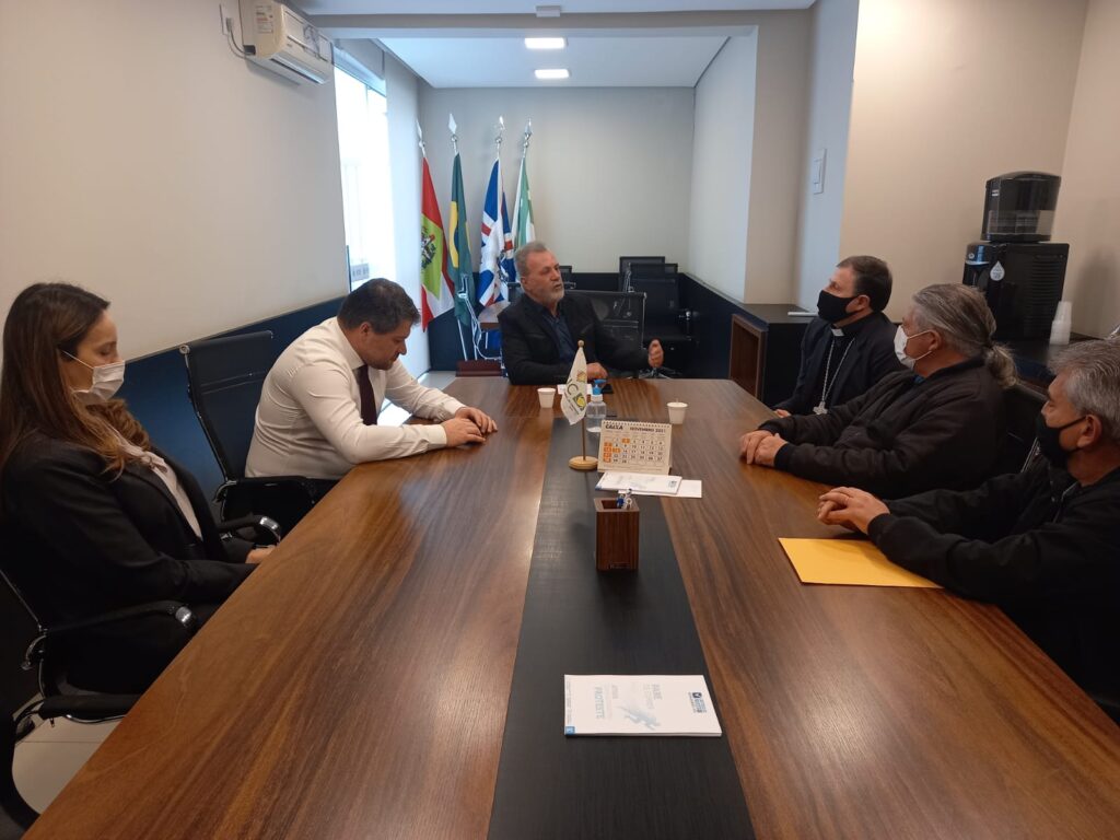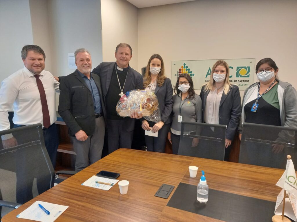 O presidente da Associação Empresarial de Caçador (ACIC), dr. Jovelci Gomes, recebeu na tarde desta quarta-feira (6) a visita do novo bispo de Caçador, Dom Cleocir Bonetti, acompanhando de padre Renato Luiz Caron e Valmir Alves da Cruz, da Diocese de Caçador.