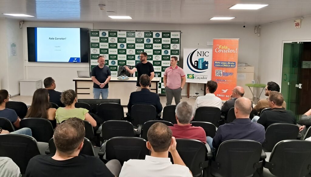 A Associação Empresarial de Caçador (ACIC), por meio do Núcleo Imobiliário sediou, na noite de quarta-feira (01/04), a palestra “Fala Corretor”, promovida pelo Conselho Regional de Corretores de Imóveis de Santa Catarina (CRECI-SC). O encontro foi conduzido pelo vice-presidente da entidade, Gabriel Carrara, e reuniu corretores de imóveis e profissionais do setor.
