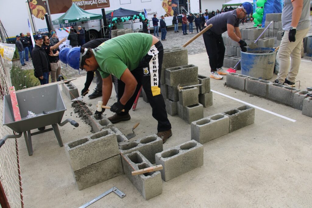 O Núcleo da Construção Civil da Associação Empresarial de Caçador (ACIC) realizou, no dia 30 de agosto, o Desafio Mestres Construtores, uma competição voltada à valorização da mão de obra do setor. O evento aconteceu no estacionamento da Seleme Materiais de Construção e reuniu profissionais, empresas e representantes da cadeia produtiva da construção civil.