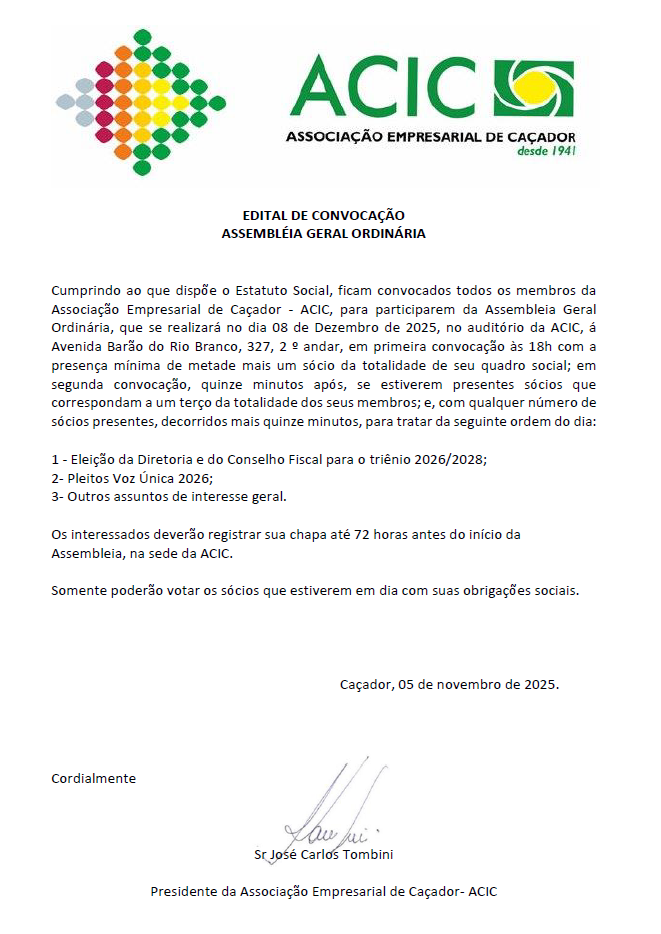 por ACIC Caçador | nov 5, 2025 | Edital | 0 Comentários