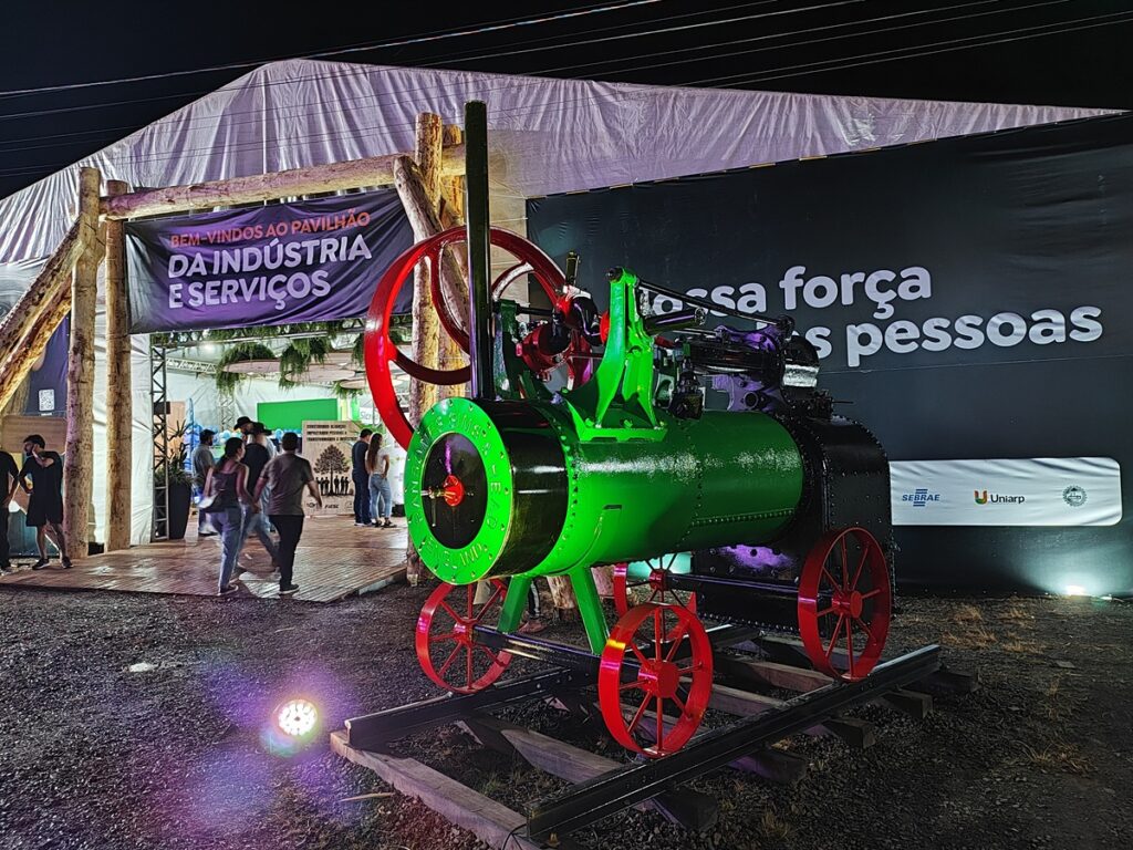 Durante sua passagem pelo Pavilhão da Indústria e Serviços neste sábado, 22 de março, o prefeito de Caçador, Alencar Mendes, apresentou oficialmente ao público um locomóvel restaurado, peça histórica que marcou o desenvolvimento do setor madeireiro do município.