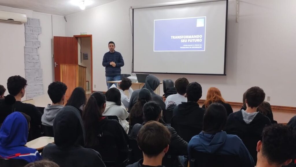 O Núcleo de Tecnologia da Informação da Associação Empresarial de Caçador (ACIC) está realizando palestras nas escolas de Caçador, para apresentar aos estudantes as oportunidades do mercado de trabalho na área da tecnologia e destacar a demanda por profissionais qualificados na região. As palestras iniciaram em 2024 e prosseguem em 2025. Ação integra o Mês dos Núcleos da FACISC.