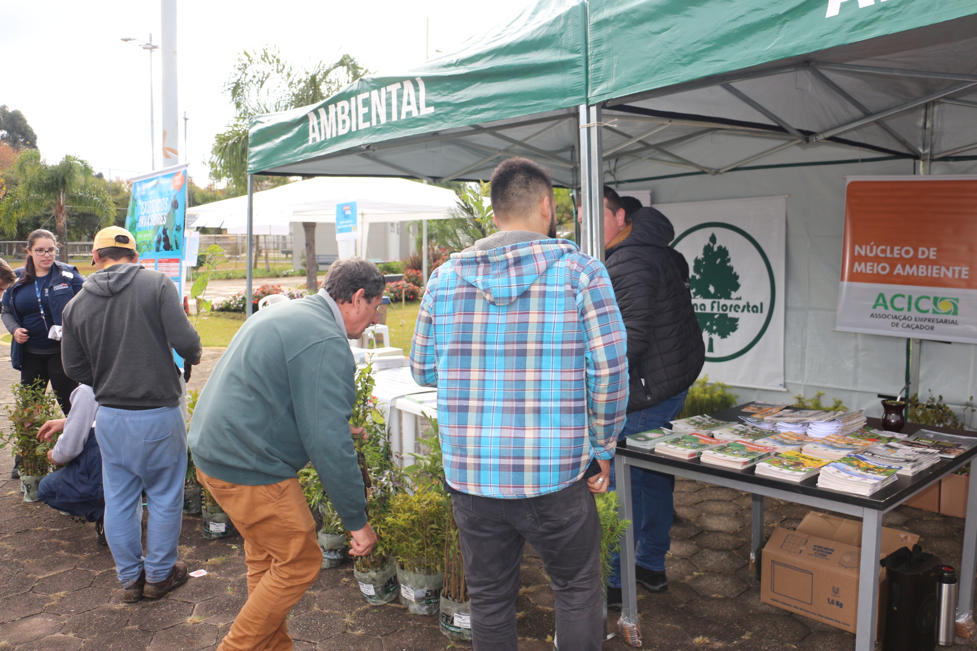 No evento em Caçador, o Núcleo de Meio Ambiente da ACIC realizou a distribuição de mudas de árvores nativas frutíferas, além de apresentar para crianças pegadas de animais silvestres, entre outras ações. O Núcleo ficou no espaço da Polícia Ambiental de Caçador.