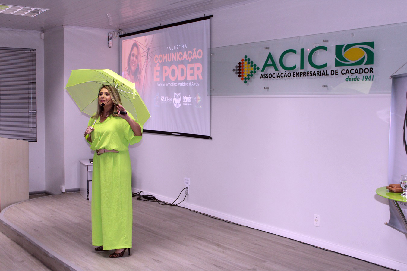 A jornalista Valdireni Alves, destacou o poder da comunicação em palestra dia 02 de agosto, no auditório da ACIC. O evento faz parte do Mês dos Núcleos e foi promovido pelo Núcleo Jovem Alcateia Empreendedora. Toda a renda obtida com a palestra será revertida para a Casa Lar São José, em Caçador.