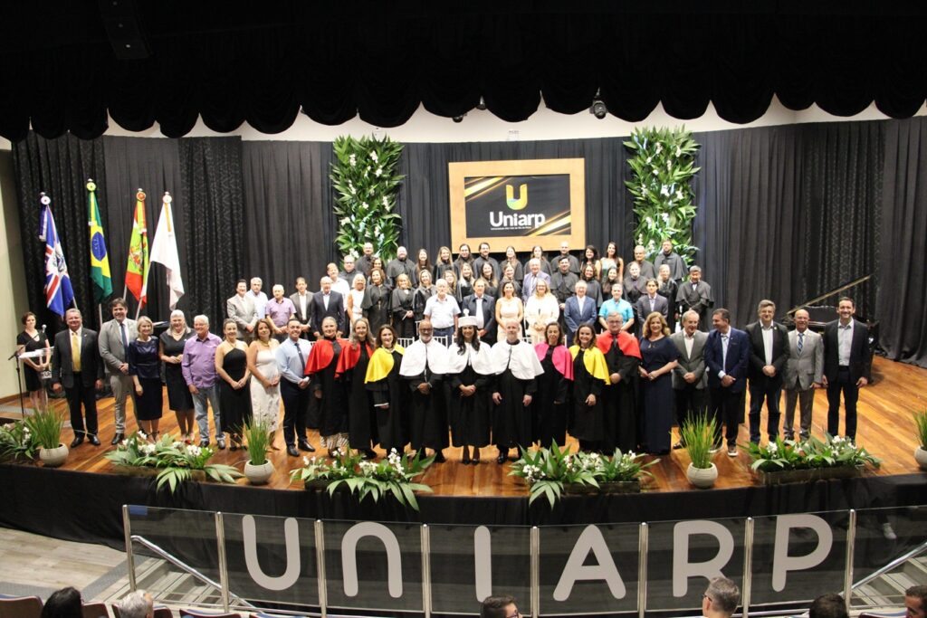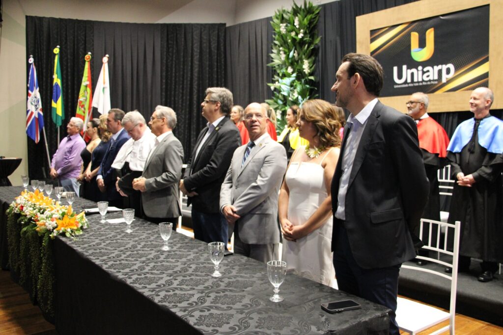 A UNIARP realizou nesta quinta-feira a solenidade de posse da Diretoria Executiva, dos Conselhos da Fundação UNIARP e da Reitoria. Tomou posse na presidência da Fundação, o Dr. Neoberto Balestrin, e na Reitoria, a professora Dra. Rosana Claudio Silva Ogoshi. Entre as lideranças presentes esteve o presidente da Associação Empresarial de Caçador (ACIC) e integrante do Conselho Curador da Fundação UNIARP, Dr. Leandro Bello. Ele destacou a relevância da Universidade para o crescimento econômico e social da região. “A UNIARP é uma das instituições mais importantes para o desenvolvimento regional. Ela forma profissionais, gera conhecimento, impulsiona pesquisas e fortalece o ambiente de inovação. Para a ACIC, estar próxima da Universidade significa contribuir para um futuro mais competitivo e sustentável para Caçador e toda a região”, afirmou.